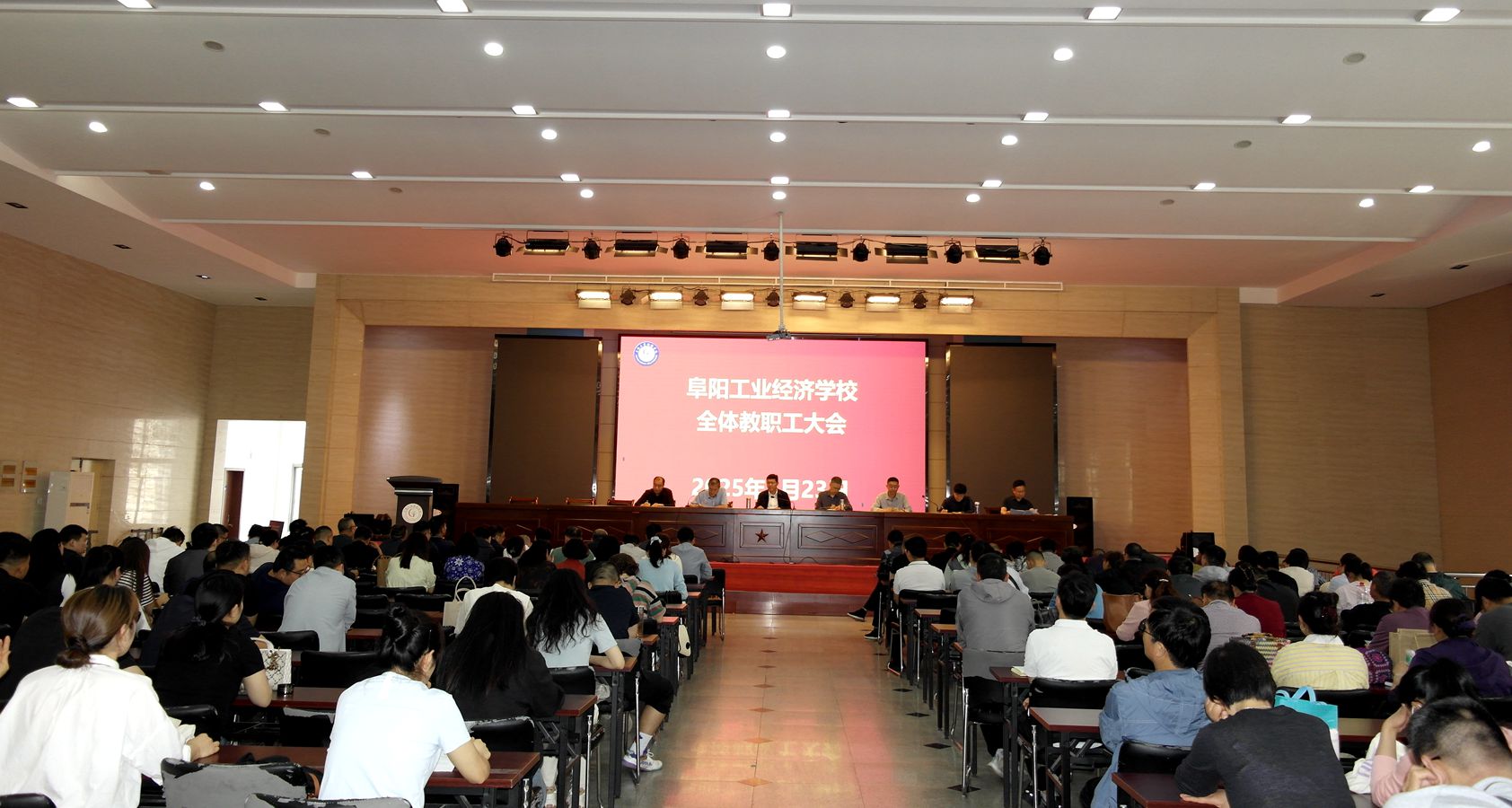 5月23日下午,阜阳工业经济学校召开全体教职工会议,校党委书记周波主持会议,学校领导班子和全体教职工参加会议。