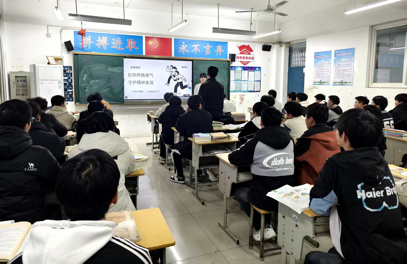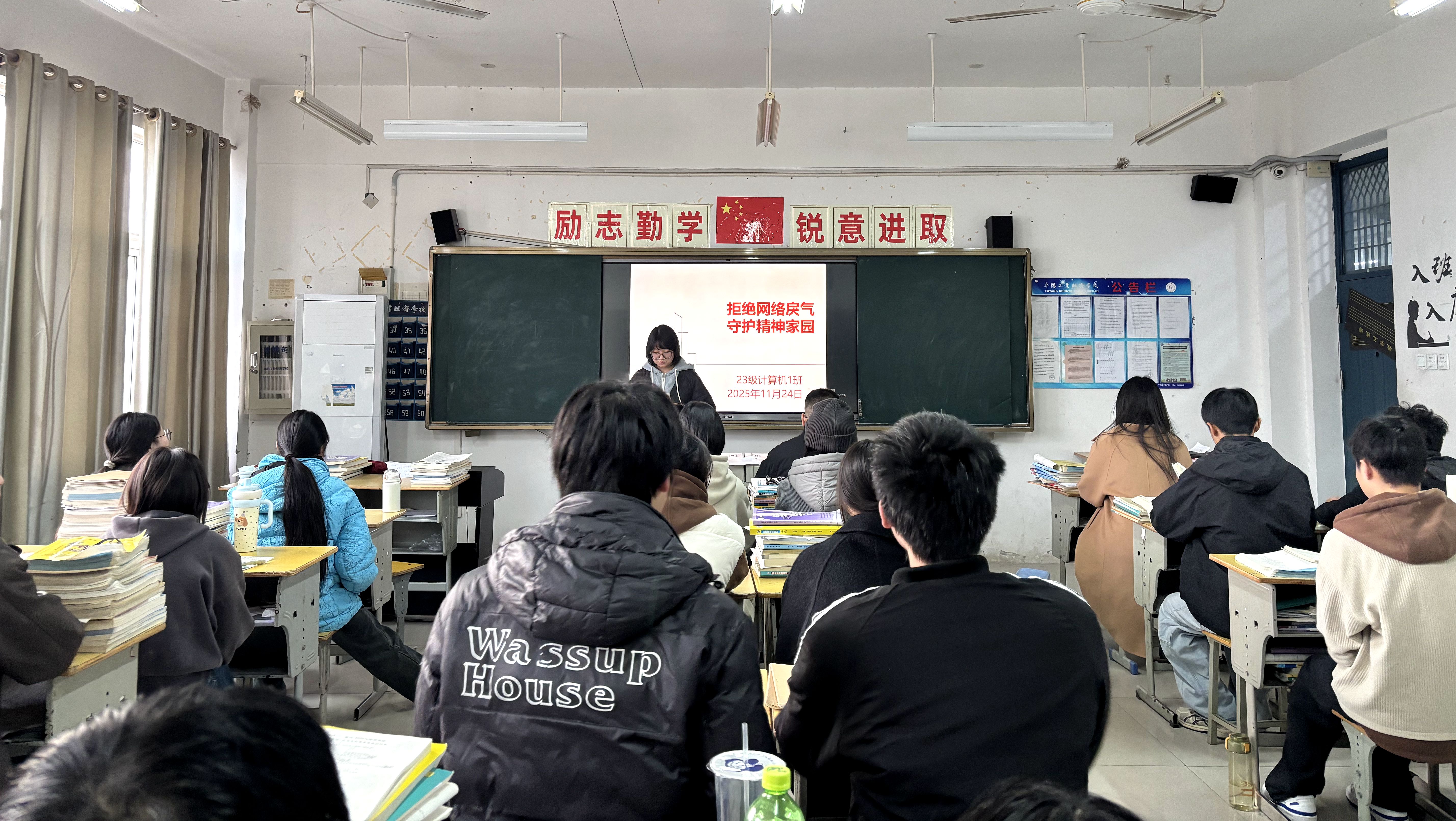 11月24日下午第3节课,各班级召开“文明上网 共筑清朗网络空间”主题班会。通过案例分析、互动讨论、倡议宣誓等形式,学生深刻认识网络戾气危害,纷纷承诺将自觉规范网络言行,抵制不良信息,以理性发言、友善互动传递青春正能量。