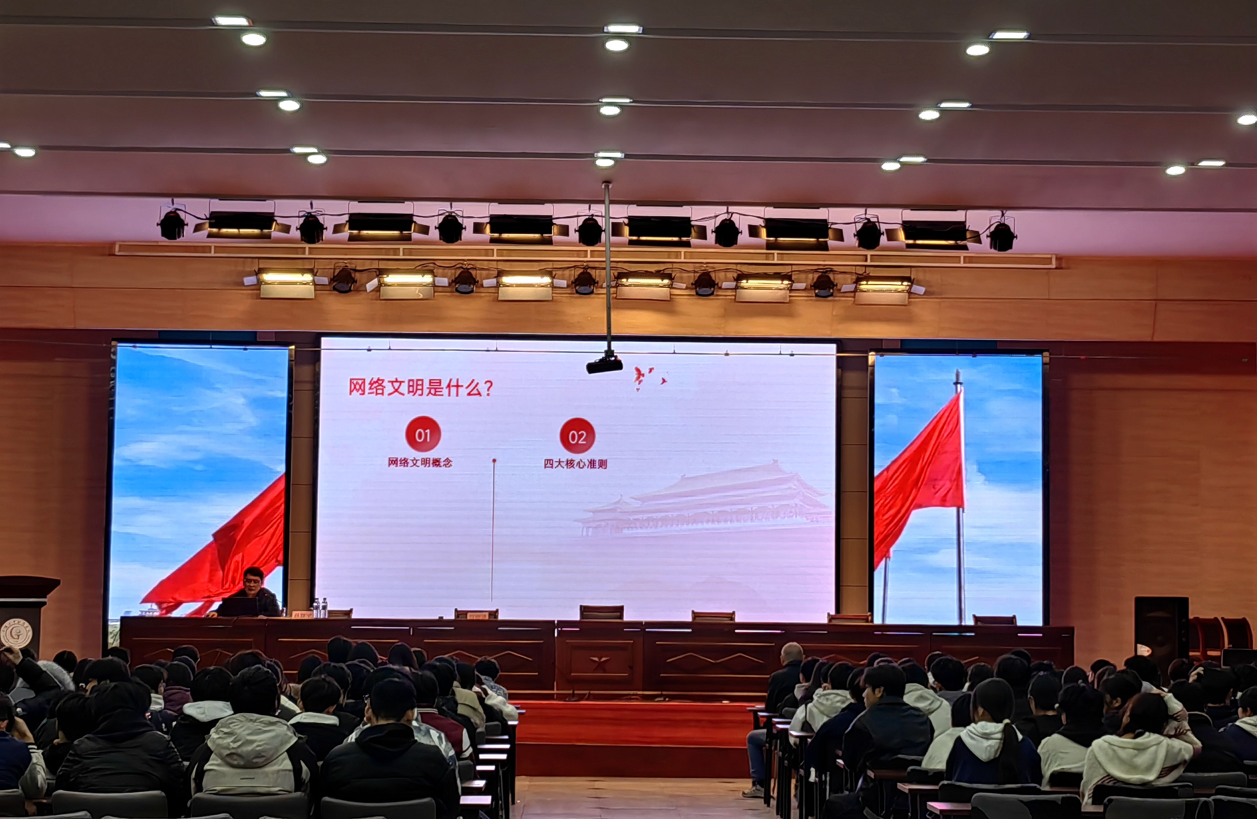 11月26日晚自习期间,市委网信办网络治理和执法监督科科长孙翔宇应邀作专题报告。报告围绕网络戾气危害、网络文明内涵、青少年文明上网要求与实践路径、网络安全防护知识等内容,结合典型案例深入解读,帮助学生明确网络言论自由的边界与责任,提升信息辨别、自我保护能力,增强防范网络诈骗、欺凌等风险的意识。
