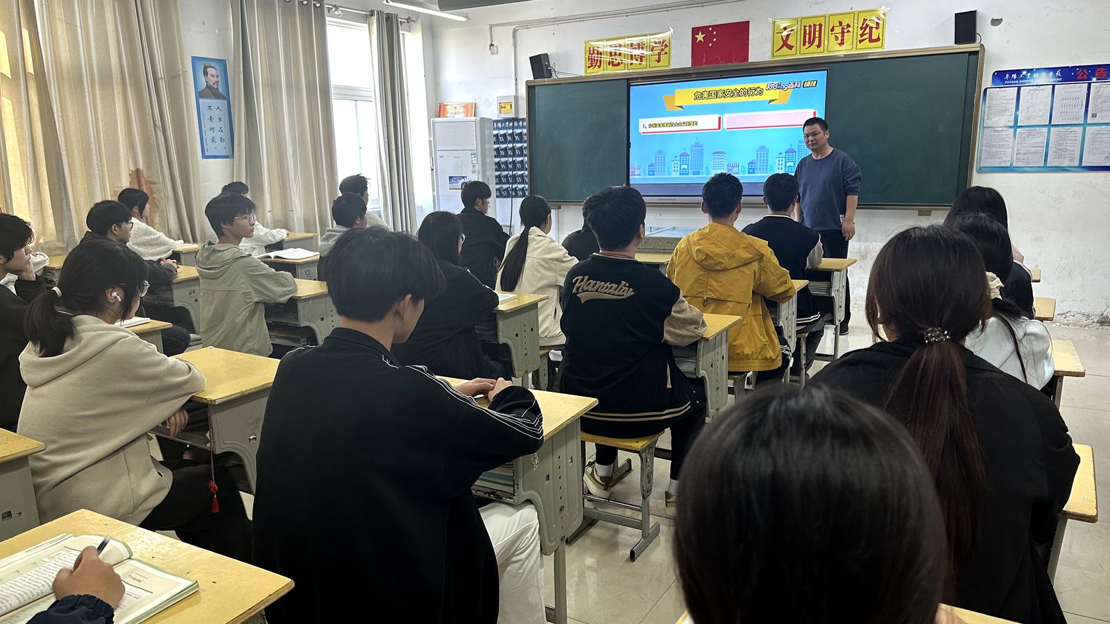 活动中,各班级紧扣“国家安全,人人有责”主题,结合专业特色创新教育形式。班主任们通过播放国家安全主题宣传片《这十年》,让学生直观感受国家安全的重要性。随后,结合PPT课件,详细讲解国家安全相关法律法规,阐述国家安全与每位公民的紧密联系。