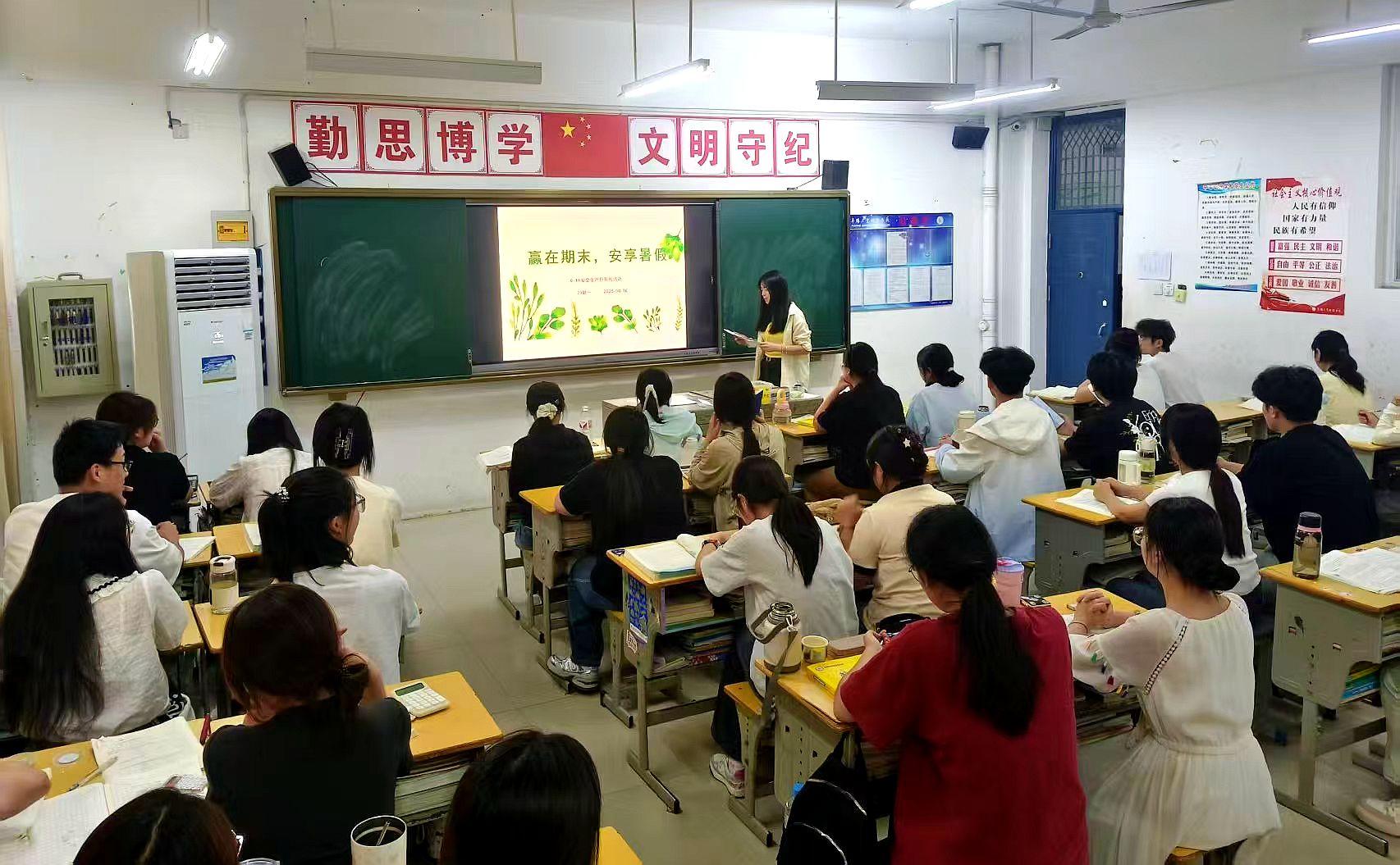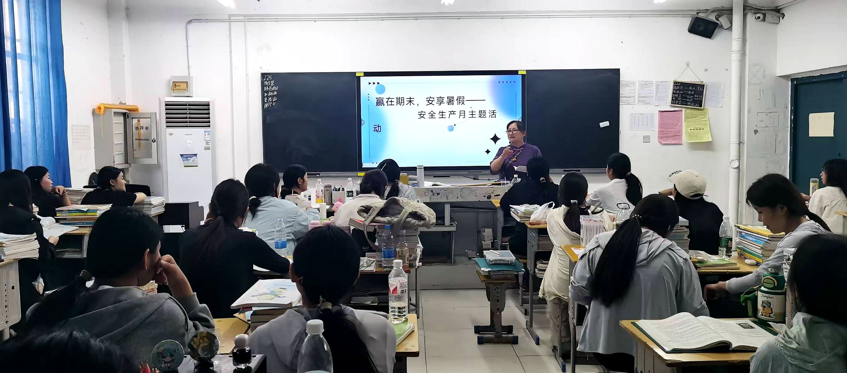 6月16日下午第3节课,阜阳工业经济学校学生科组织两校区全体班级开展“赢在期末,安度暑假”主题班会,东校区以集中宣讲、南校区以班级为单位的形式,为学生的期末冲刺与暑期生活筑牢安全与成长“双防线”。