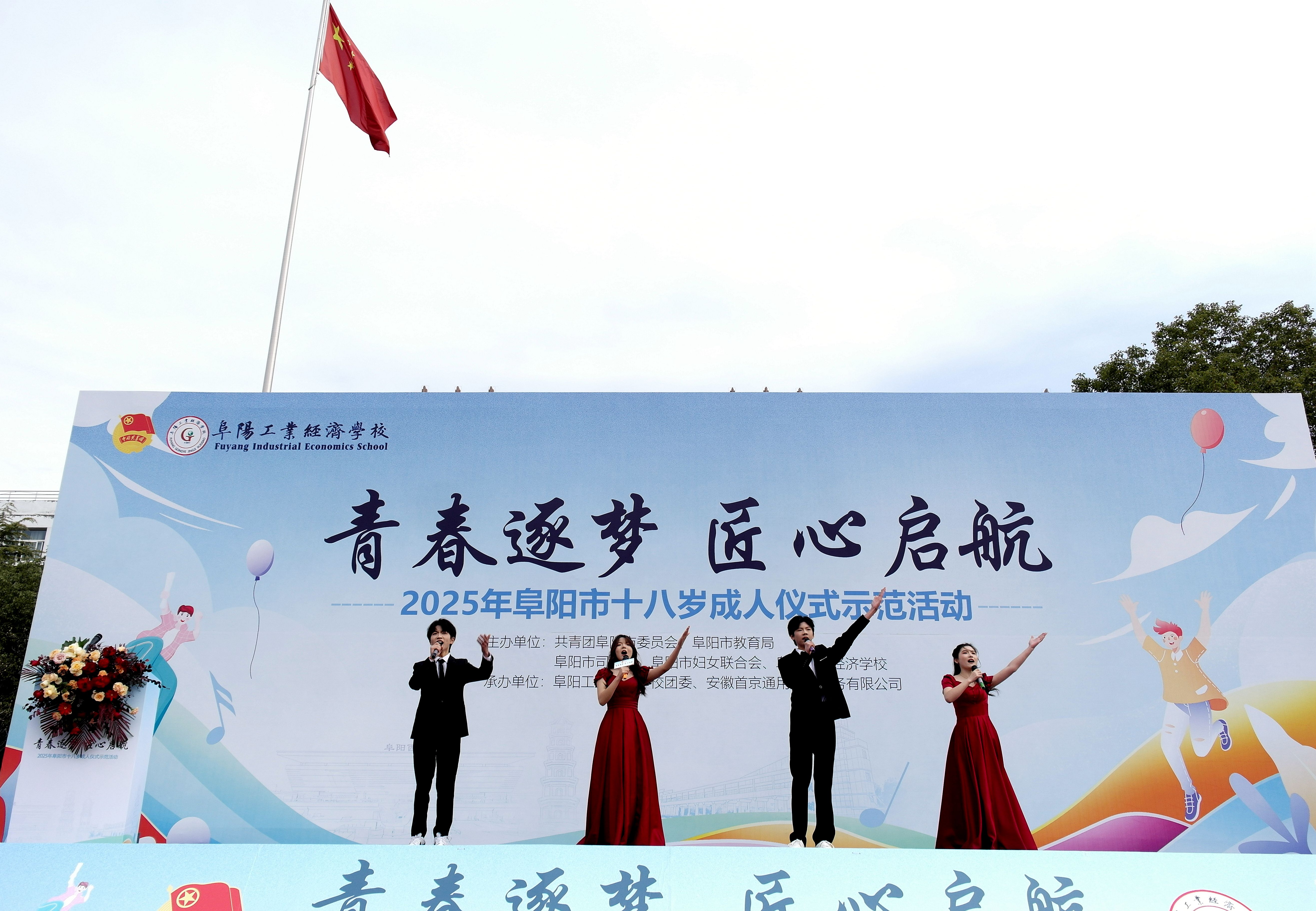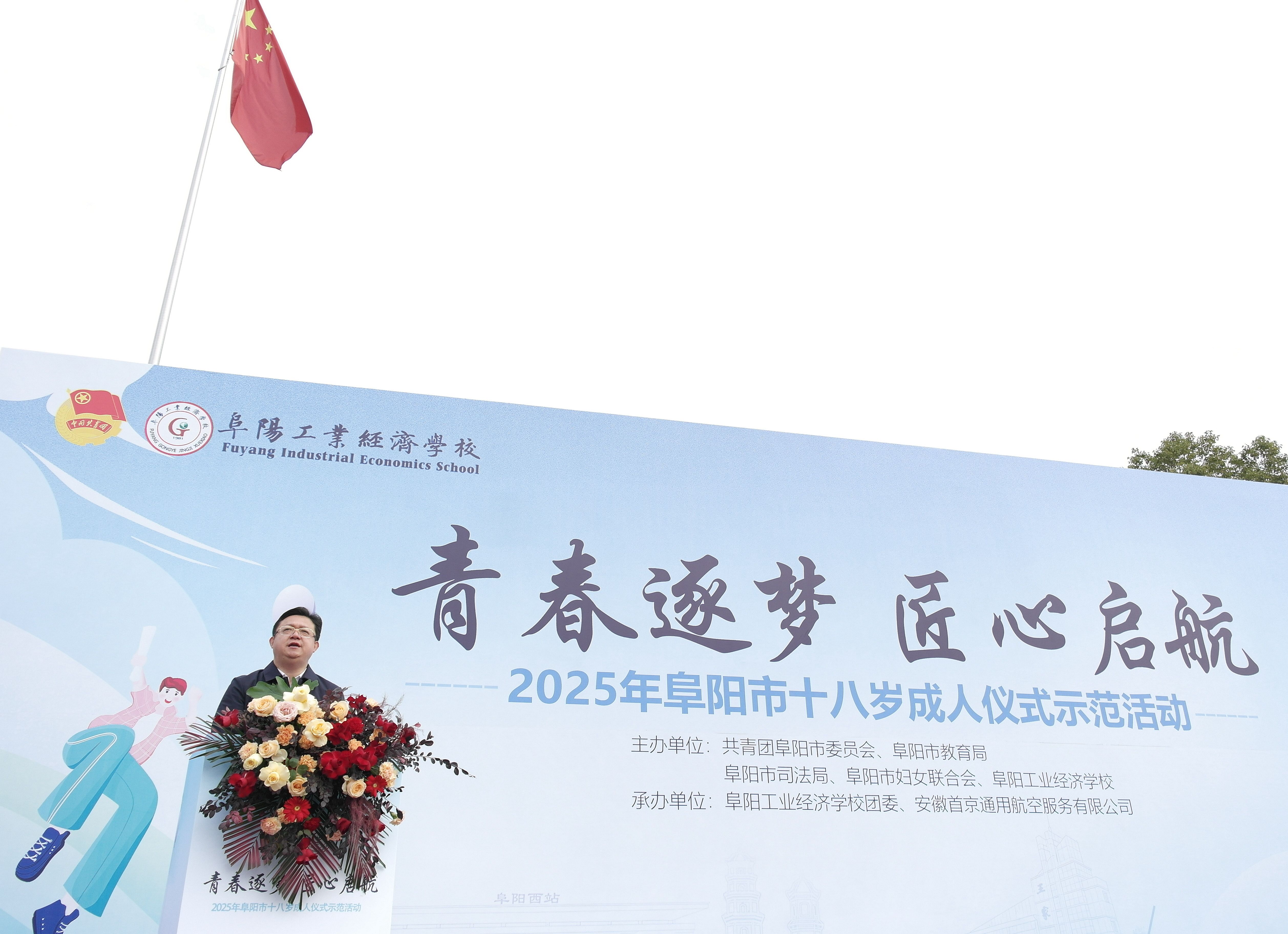 12月4日上午,由共青团阜阳市委员会、市教育局、市司法局、市妇联联合阜阳工业经济学校主办的 "青春逐梦 匠心起航"2025年阜阳市十八岁成人仪式示范活动,在我校隆重举行。校党委书记陈颍峰、团市委书记许灿分别致辞,市妇联党组成员、副主席于贺,市教育局职业与成人教育发展中心主任谷子明,校党委委员、副校长范峰出席活动。